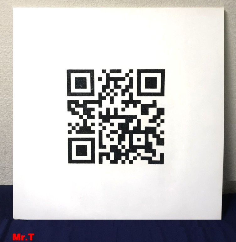 日本で生まれたQRコードでメッセージを伝える作品をつくっている作家。このQRコードは携帯電話の実際にQRコードリーダーで読み込むことができる。